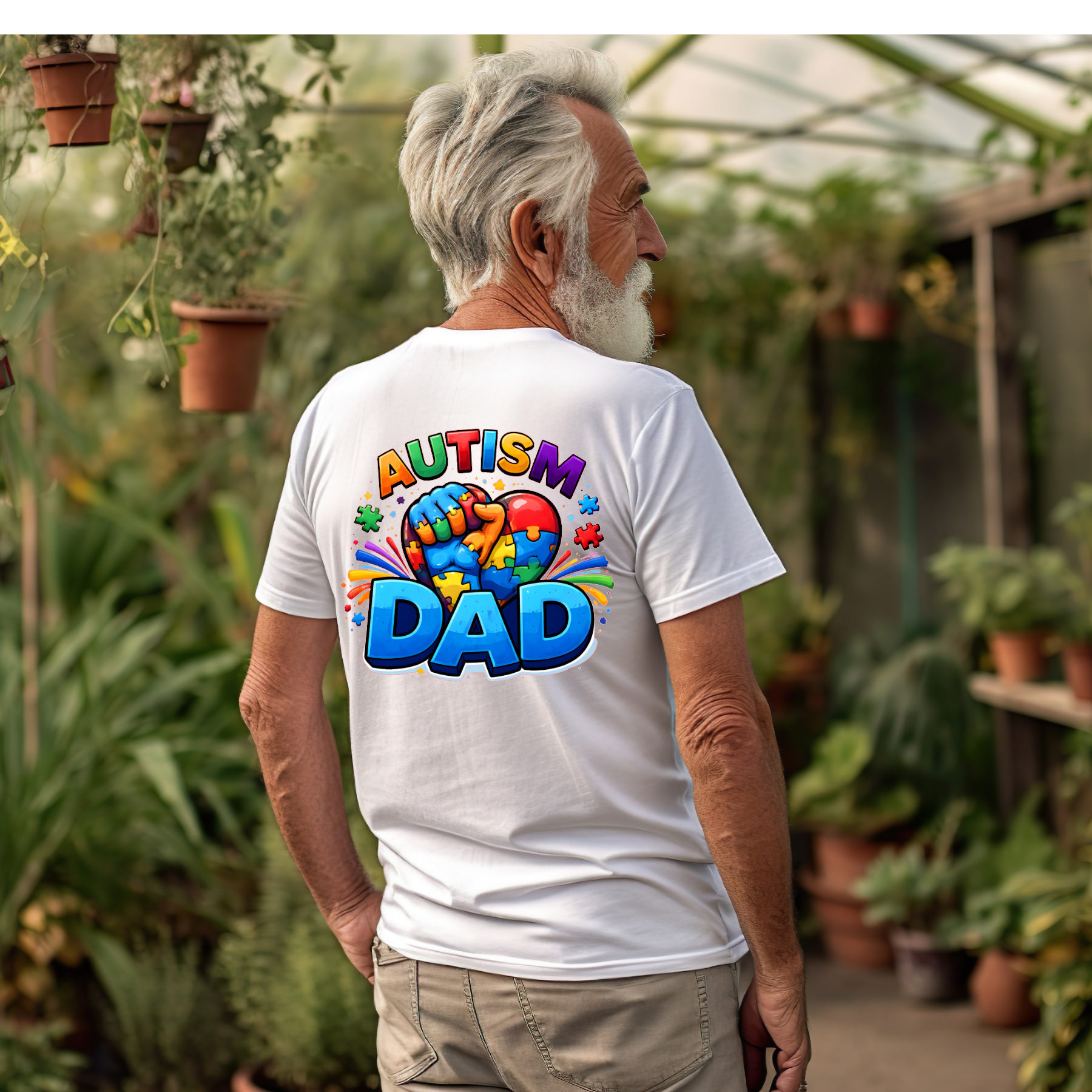 TSHIRT Autism Dad - Fathers Day Birthday Autism Awareness Unisex Casual Crew Neck Tshirt 100% Cotton
