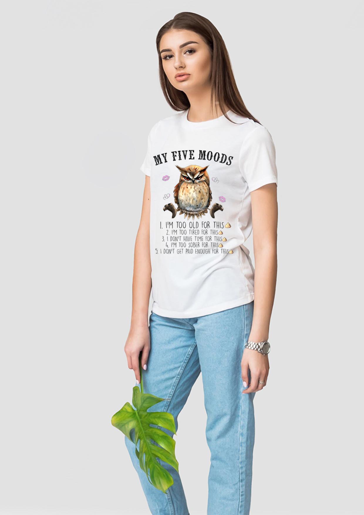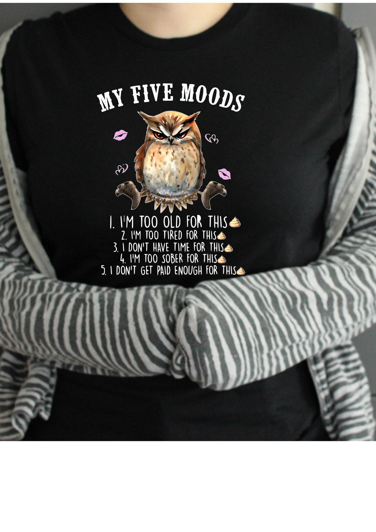 TSHIRT - Funny Joke Sarcastic Owl My Five Moods Unisex Casual Crew Neck Tshirt 100% Cotton